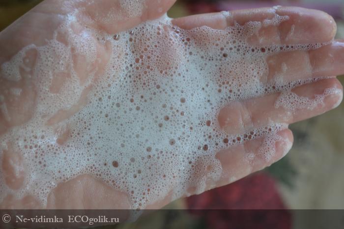 Мыло хорошо пенится, образуя мягкую кремовую пену. В руках она более воздушная, а вот при использовании мочалки получается плотненькая, и ее гораздо больше.