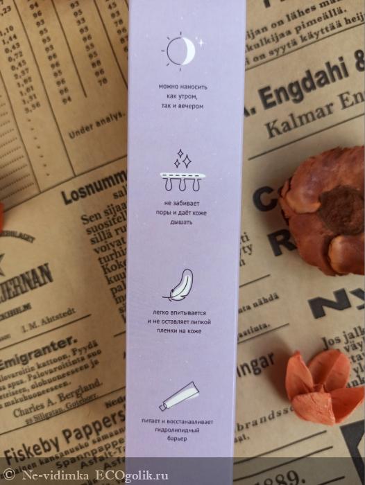 Ощущается крем на коже комфортно - нет ни липкости, ни жирности. Кожа после нанесения увлажненная, мягкая, нежная, очень приятная на ощупь. У меня комбинированная кожа с сухими участками в районе щек и выраженной жирностью с Т-зоне. Круто, что крем отлично работает по всем фронтам - увлажнения и питания хватает сухим участкам на весь день (ночь), а жирные - хорошо себя чувствуют, нет излишнего блеска.