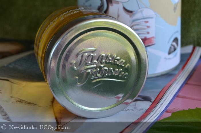 Закрывается баночка плотно при помощи металлической крышки, на которой выдавлен логотип производителя.