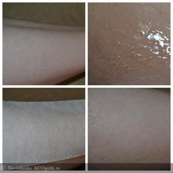 При правильном выполнении всех действий паста хорошо обволакивает волос, позволяет их полностью удалить, оставляя гладкую кожу. На фото выше хорошо видна граница удаленных волос.