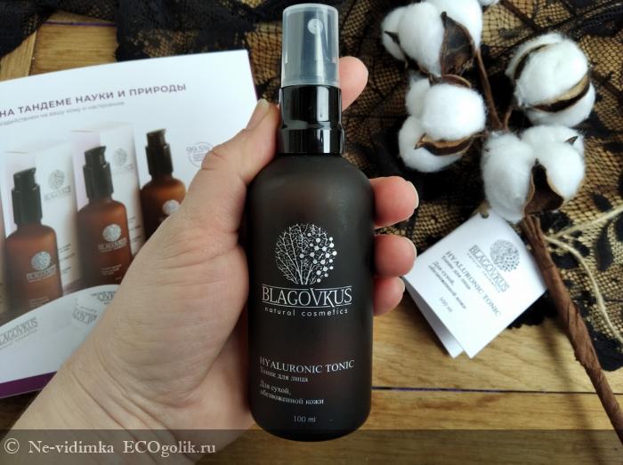 Ассортимент у Blagovkus еще совсем небольшой, но продукты есть очень интересные. В первую очередь я обратила внимание на новинку - Тоник для лица "Hyaluronic tonic".