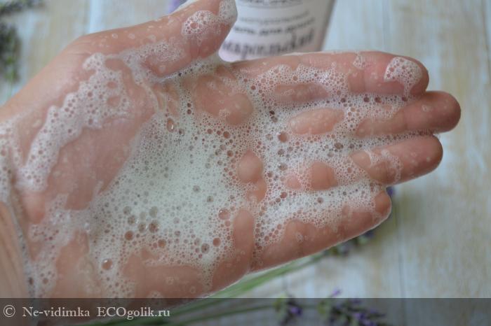 Ingredients(состав): Aqua (вода очищенная), Cocoglucoside (кокогликозид), Sodium Coco-Sulfate (кокосульфат натрия), Glycerin (глицерин растительный), SodiumChloride (соль пищевая), Lavender Oil (эфирное масло лаванды), Lemon Oil (эфирное масло лимона), Citric Acid (лимонная кислота), Sodium Benzoate (бензоат натрия), Potassium Sorbate (сорбат калия), Carmine (натуральный краситель), Titanium Dioxide (минеральный краситель).