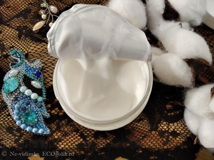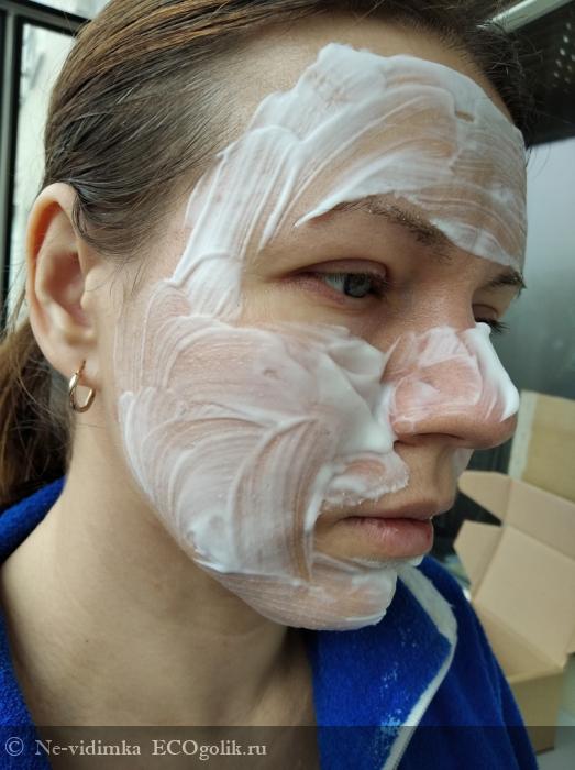 Маска белого цвета, однородная. Консистенция кремовая, потрясающе приятная в использовании - хорошо набирается, легко распределяется по коже, в процессе выдержки не течет.