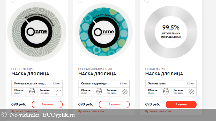Все три маски-новинки Onme упакованы в одинаковые баночки-шайбы объемом 100 мл. Их стоимость на официальном сайте производителя 690 рублей.