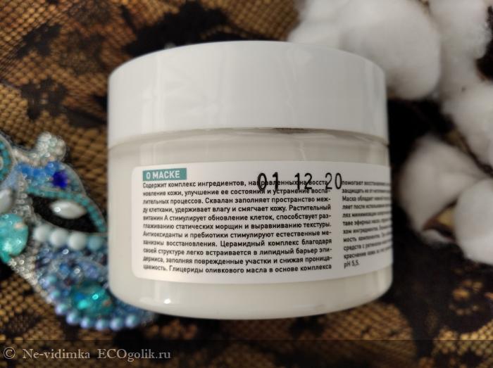Маска прекрасно восстанавливает кожу после обветривания, непогоды, успокаивает и убирает шелушения. Также эту маску хорошо использовать после курса кислотных пилингов, так как она способствует поддержанию защитных функций кожи.