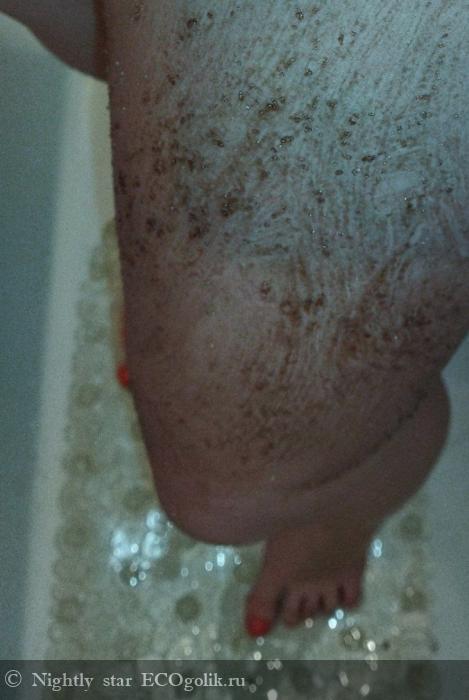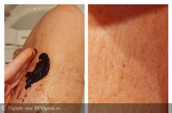 Распределяется продукт по влажной коже замечательно, а за счет своей липкости - скраб не падает ошметками в ванну, что безусловно, для меня является плюсом, так и расход намного экономичнее. При регулярном использовании, объёма в 150 мл мне хватает где-то на месяц. Хотя срок годности дольше и можно хранить полгода после вскрытия.
