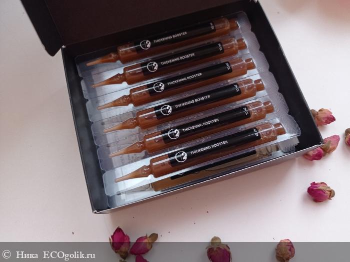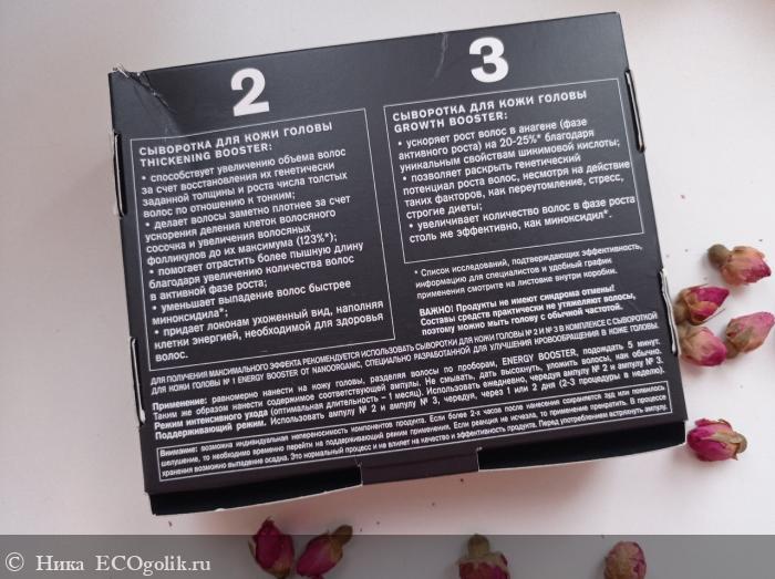 Заметила что после 12 дней (на столько хватает ампул в одной упаковке) волосы стали чуть плотнее, но не прям так ощутимо. Наблюдается рост волос. Но жаль, что производитель не продумал чтобы упаковки хватало на курс. Пусть цена будет дороже, но лучше купить 1 набор и не думать о том, что вот надо еще докупать.