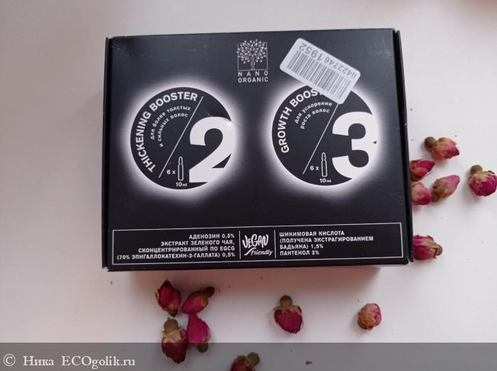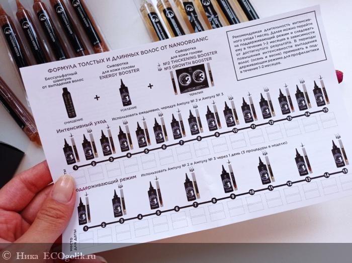 Внутри коробки находится 12 ампул - по 6 штук двух разных видов. Помечены они цифрами 2 и 3. Ампулы рекомендуется использовать после нанесения сыворотки №1 Energy booster тоже от бренда Нано органик, на нее я уже писала отзыв.
