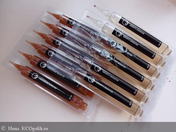 Сначала я получается наносила сыворотку-бустер. Втирала в кожу головы и массировала ее. Потом ждала минут 5. И наносила одну из ампул, чередуя их между собой каждый вечер.