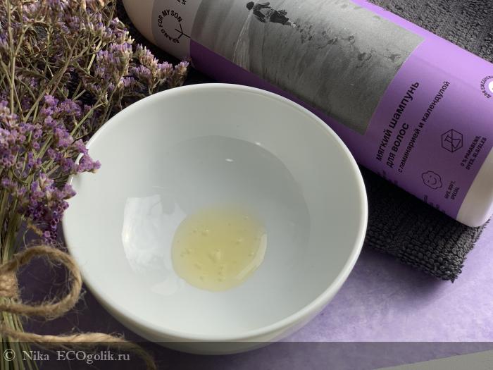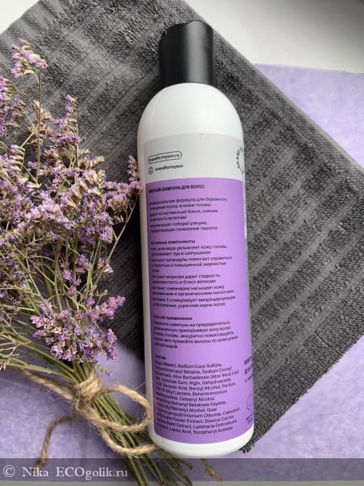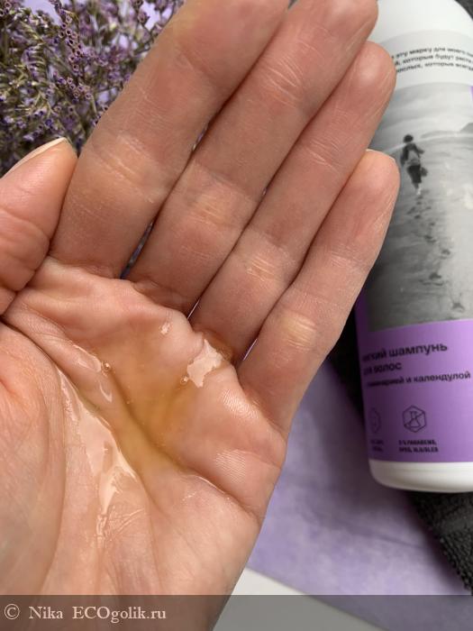 - Мягкий шампунь для волос с ламинарией и календулой хорошо и качественно промывает волосы, но при этом их не пересушивает.