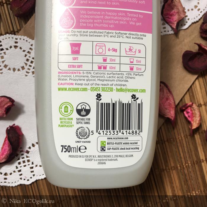 Итак, отмечу плюсы смягчителя для белья Ecover: