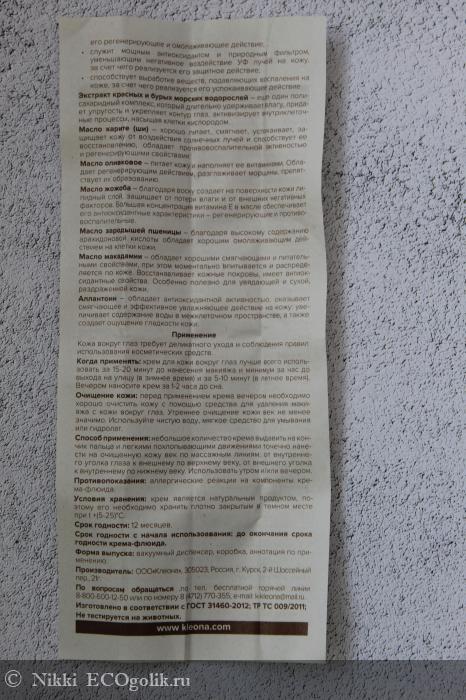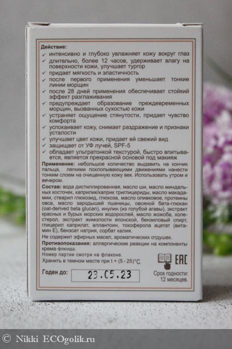 В составе мы видим полезные ингредиенты для нашей кожи вокруг глаз, только польза и ничего лишнего.
