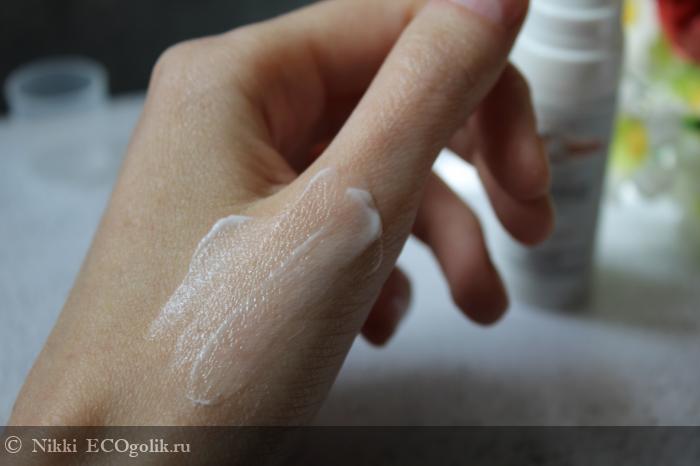 Он очень легко распределяется, быстро впитывается. За минуту я перестаю ощущать его на коже. Нет липкости, нет жирности.