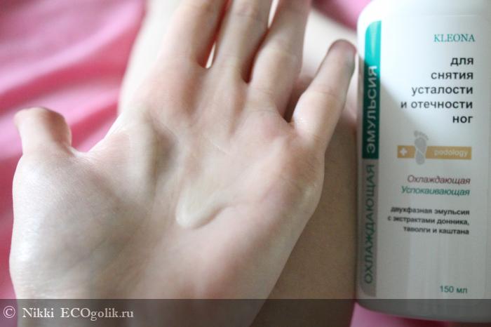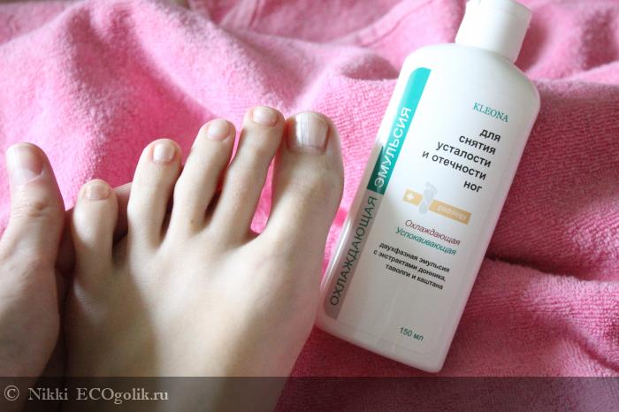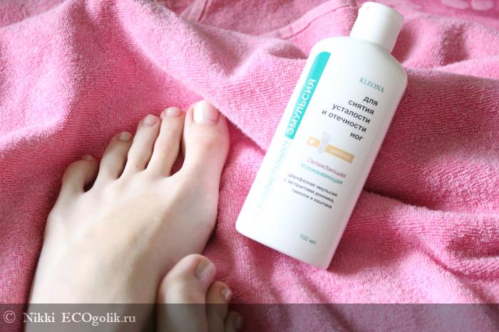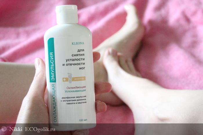 На лето у меня появилось отличное средство для ножек, которое помогает мне в жару - это охлаждающая двухфазная эмульсия для снятия усталости и отечности ног от Клеоны.