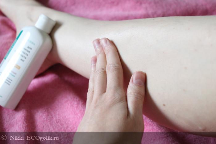 Наношу эмульсию на чистую кожу ступней и / или ног либо вечером, либо по возращении домой. По ситуации я могу мазать либо просто ступни, либо полностью ноги до колен, а иногда и выше.