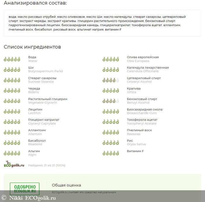 Крем насыщен полезными и ценными ингредиентами для кожи.