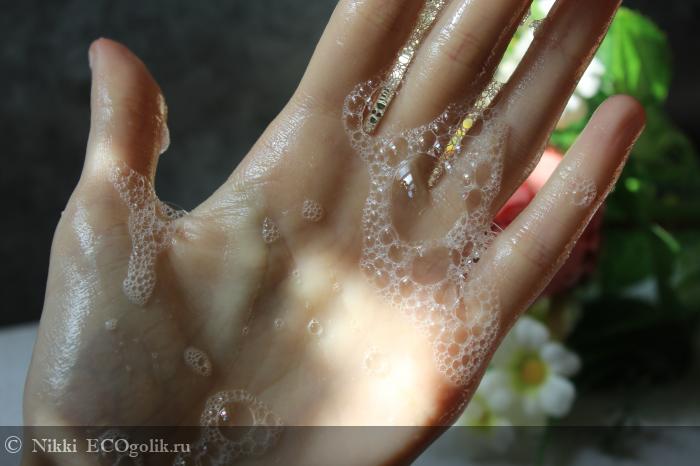 Немного геля выдавливаю на ладошку, чуть вспениваю и наношу на кожу, 30 секунд массирую и смываю.