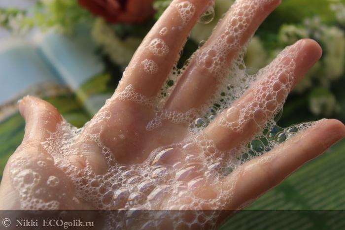 Мыло почти не обладает запахом, лишь где-то в отдалении слышу что-то приятное.