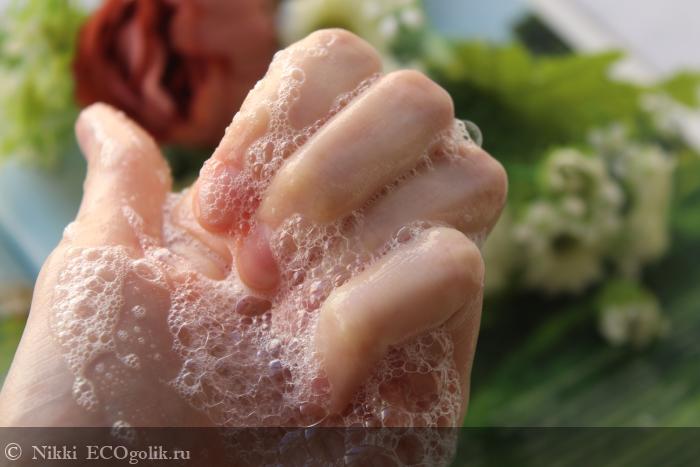 В мыле главное для меня - это мягкое очищение и чтобы не сушило кожу, с этими показателями мыло справляется отлично. Хотелось бы ещё приятный аромат, но я понимаю, что у натуральных продуктов он если и есть, то обычно слабый.
