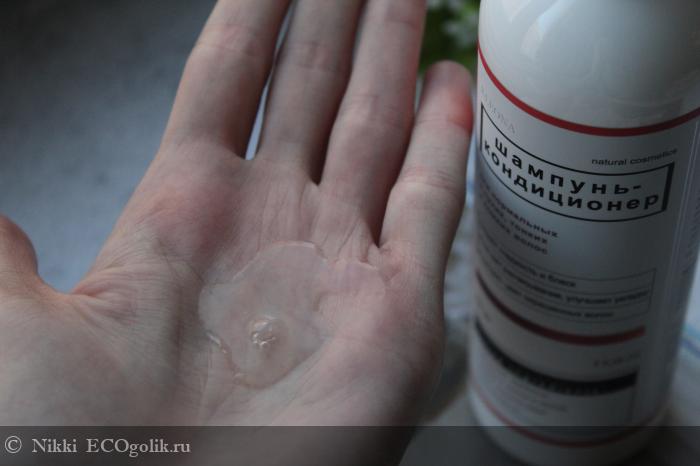 Текстура у шампуня гелевая, довольно жидковата. Цвет - прозрачный.