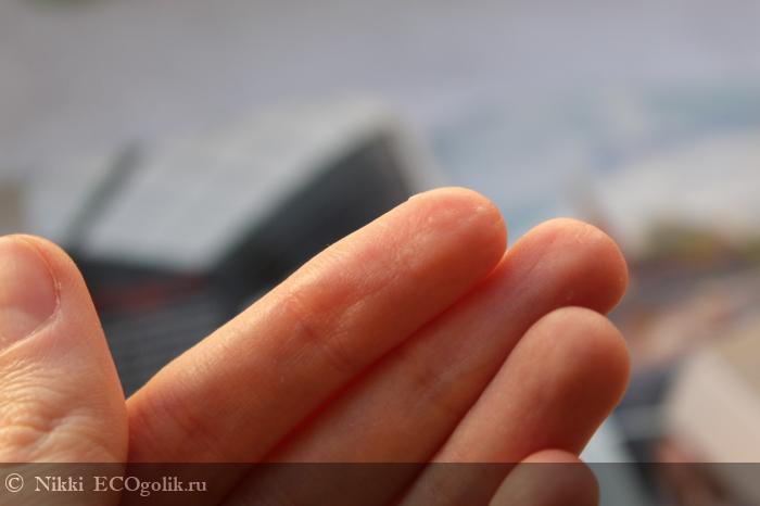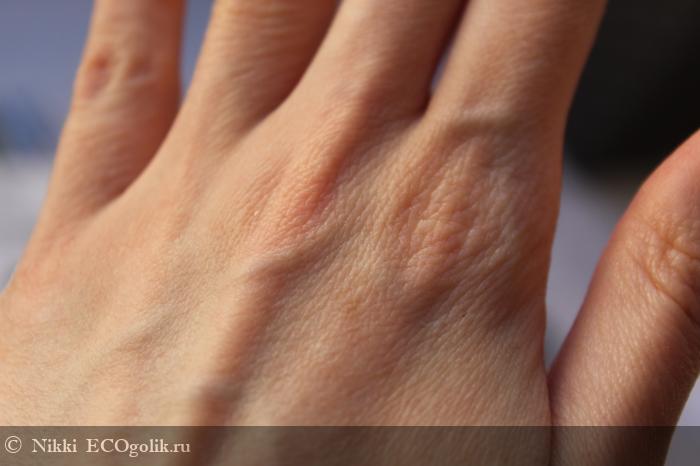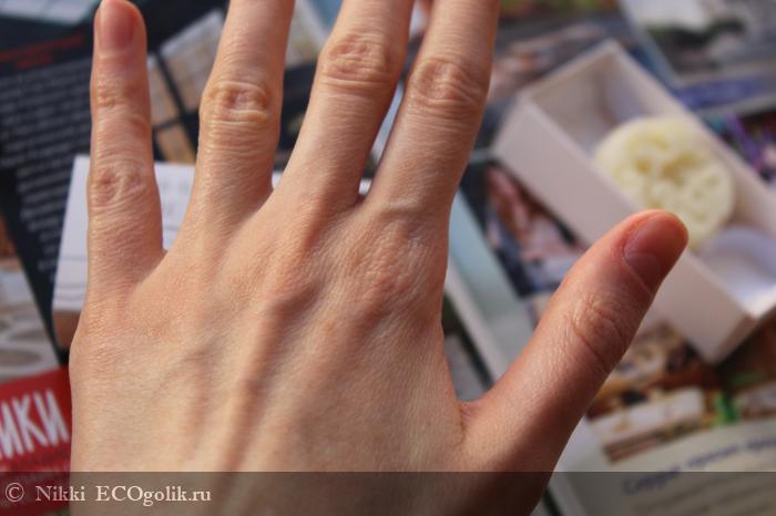 По коже рук легко распределяется, заполоняя каждую трещинку.