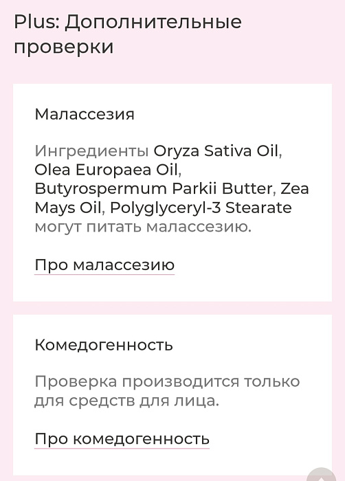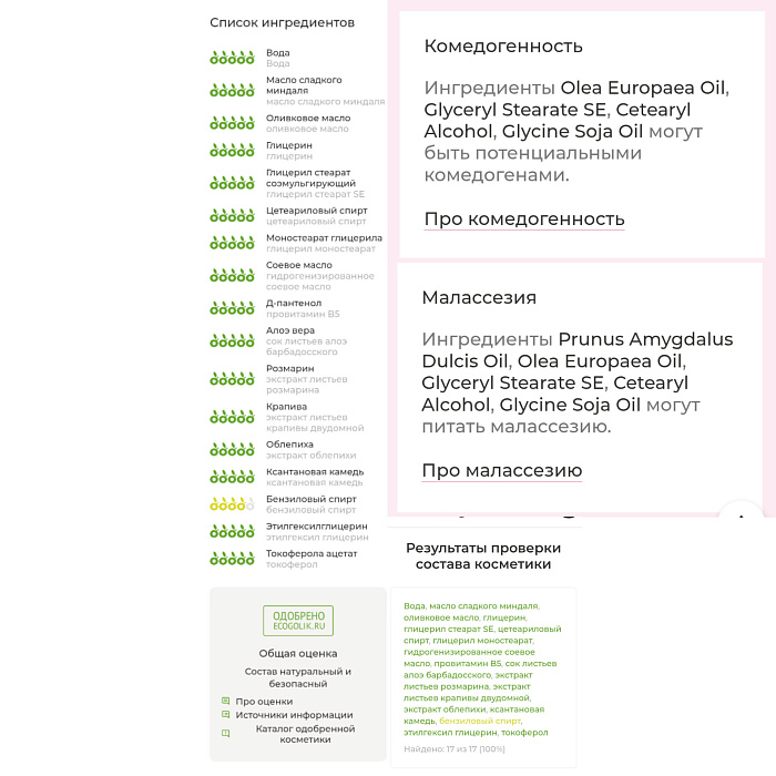 Поры не забивает, впитывается быстро, не оставляет жирного, масляного блеска. Чувствуются ярко нотки лемонграсса, потом ощущаются лёгкие нотки мяты и совсем слабо в шлейфе можно почувствовать ноты лаванды. Аромат быстро улетучивается.