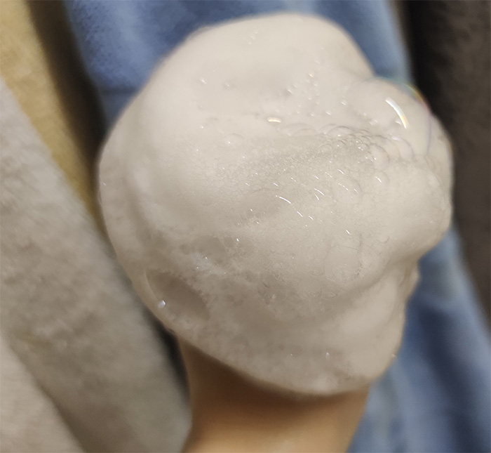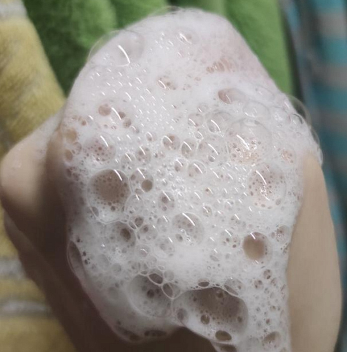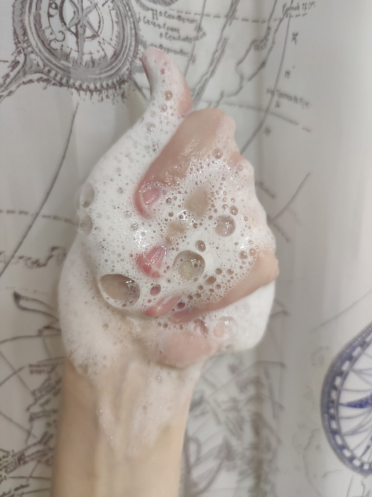 Консистенция у него гелевая, достаточно жидкая, но расход при этом экономичный. Пенообразование ярко выраженное, даже с 1 намыливания получается большое облачко пенки.