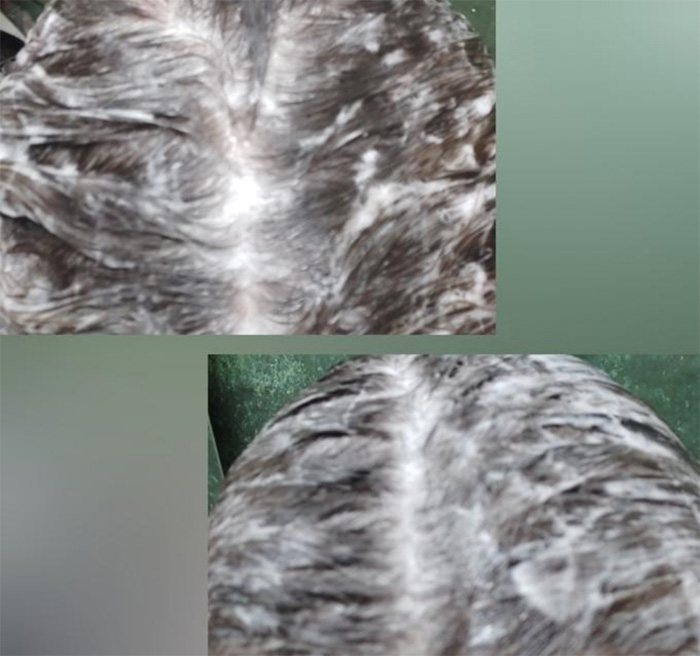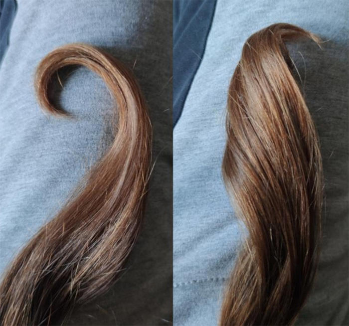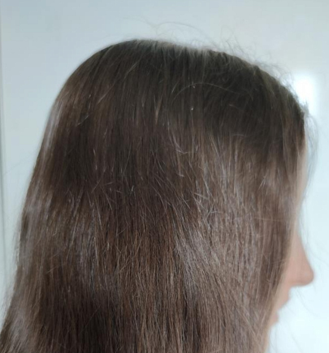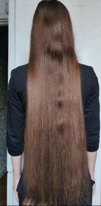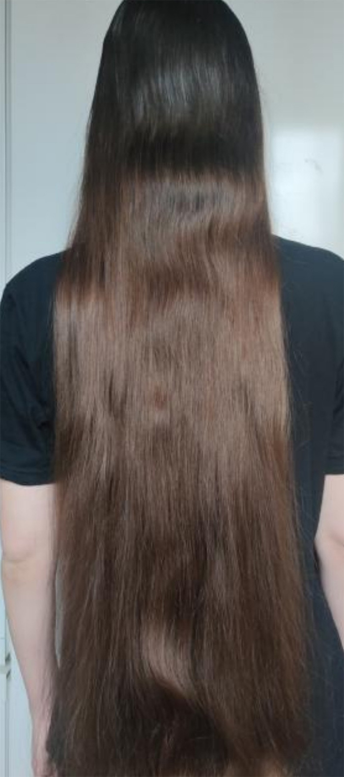 Особенности волос: Среднепористые, волнистые, натуральные, не повреждены, не были окрашены, средней толщины и густоты, нормальные по качеству. Длина более 1 метра. Есть склонность к ломкости и сечению. Нормальный тип кожи головы.
