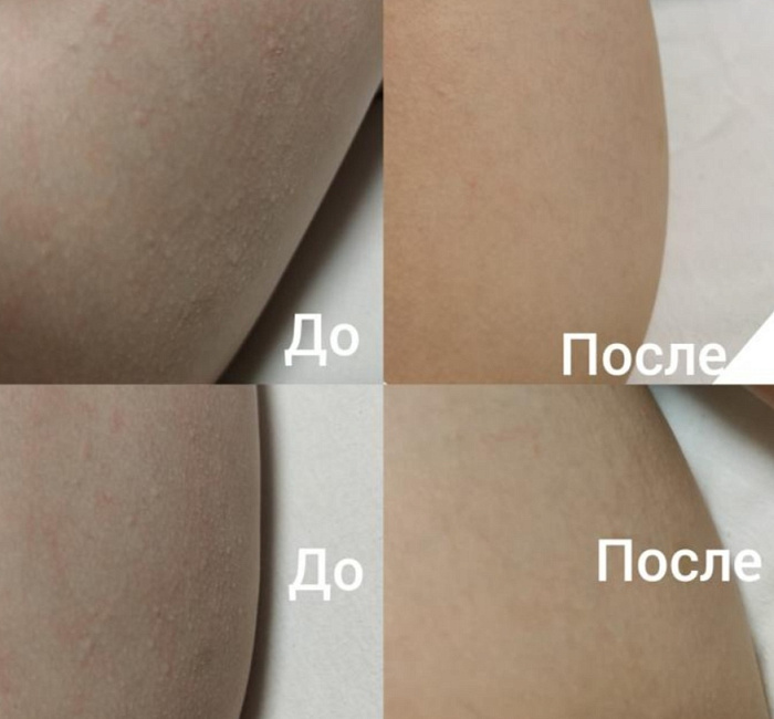 Питает, смягчает прекрасно, успокаивает отлично. Снимает раздражение кожи, зуд. Обладает влагоудерживающим действием. Устраняет сухость, эффектно избавляет от шелушений, чувства стянутости. Можно использовать после депиляции, бритья, загара, бассейна