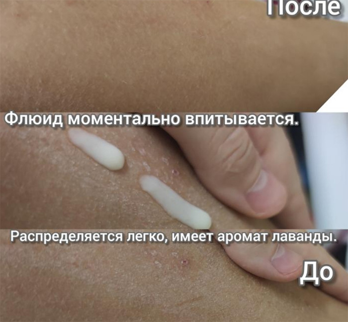Мгновенно увлажняет кожу, быстро успокаивает, снимая покраснения. Ощутимо смягчает и напитывает. Прекрасно устраняет сухость, избавляя от шелушения. Подходит для всех типов кожи. Моментально впитывается, имеет жидкую консистенцию и аромат лаванды.