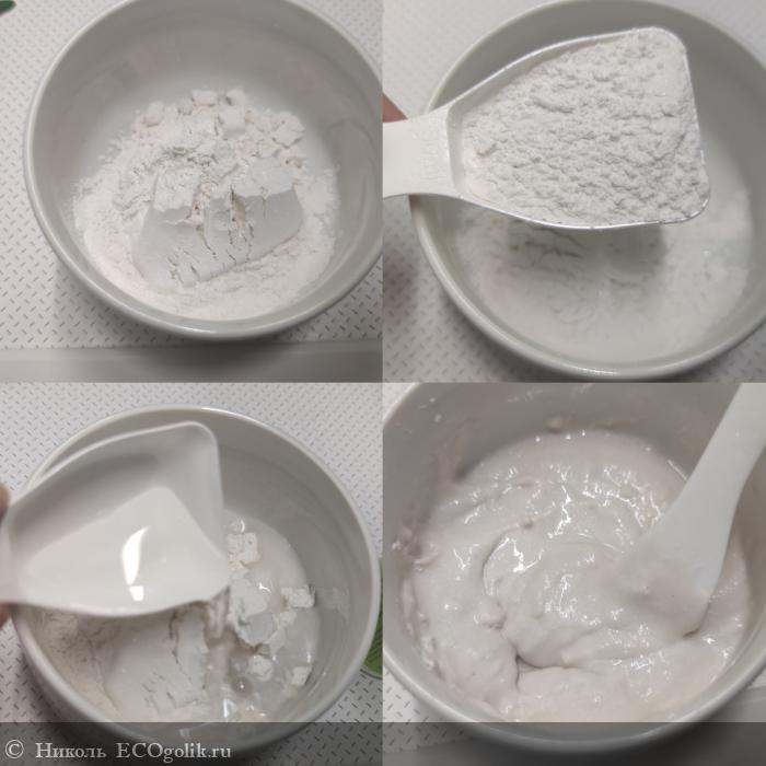 Разводится и распределяется маска легко без комочков. Использовала для её разведения гидролат розы от PERFECT4U, (Сюда можно нажать, чтобы прочитать подробный отзыв про этоь гидролат розы от PERFECT4U.) а ещё делала на гидролата бессмертника и гидролата лаванды от других брендов.