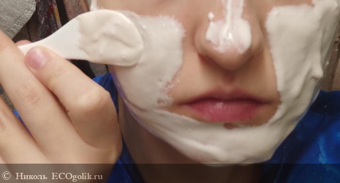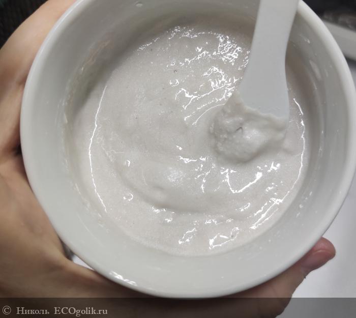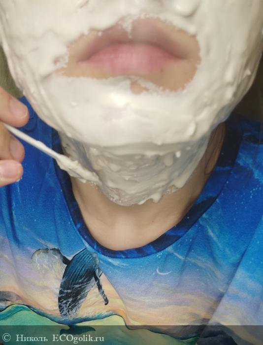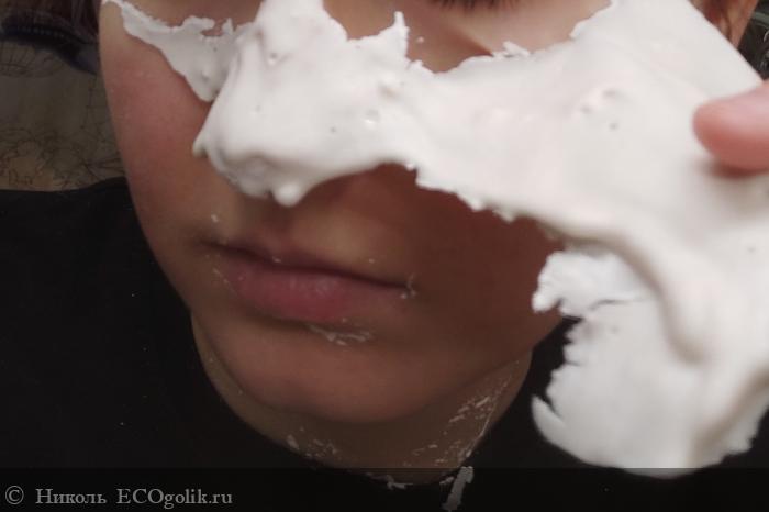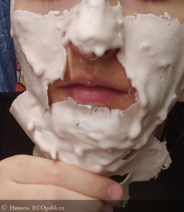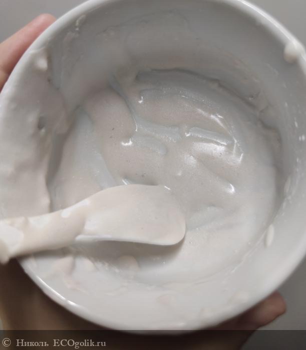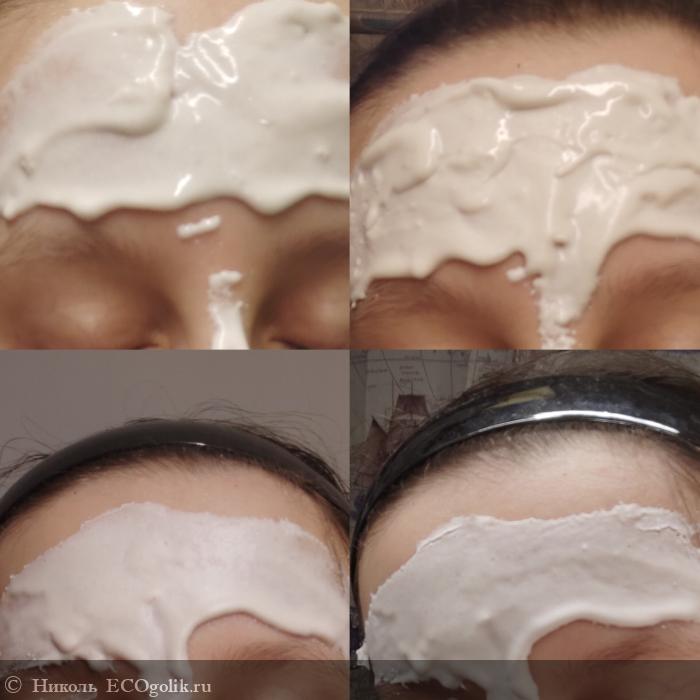 Получается вот такая масса. Она средней густоты, относительно быстро застывает. Маска очень комфортна в использовании. Не достает нервотрёпки при нанесении.