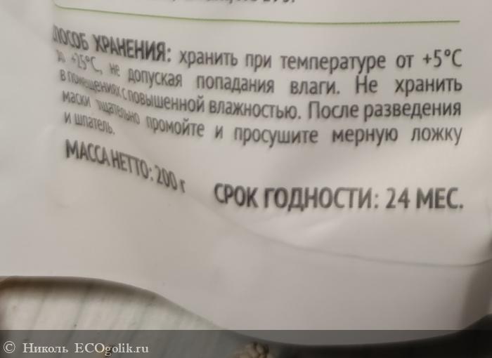 - Способ хранения: хранить при температуре от +5°С до +25°С, не допуская попадания влаги. Не хранить в помещениях с повышенной влажностью. После разведения маски тщательно промойте и просушите мерную ложку и шпатель.