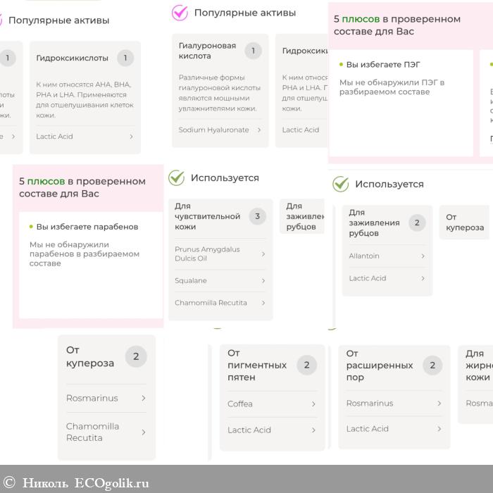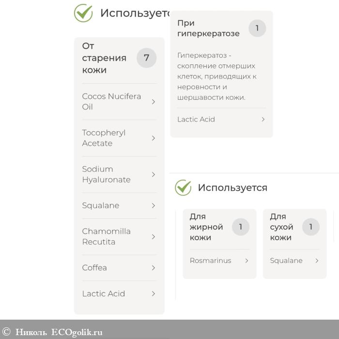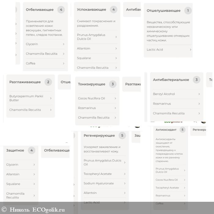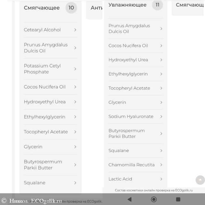 Прикреплю разбор компонентов по косметическому действию. Выявилось большое количество смягчающих и увлажняющих компонентов.