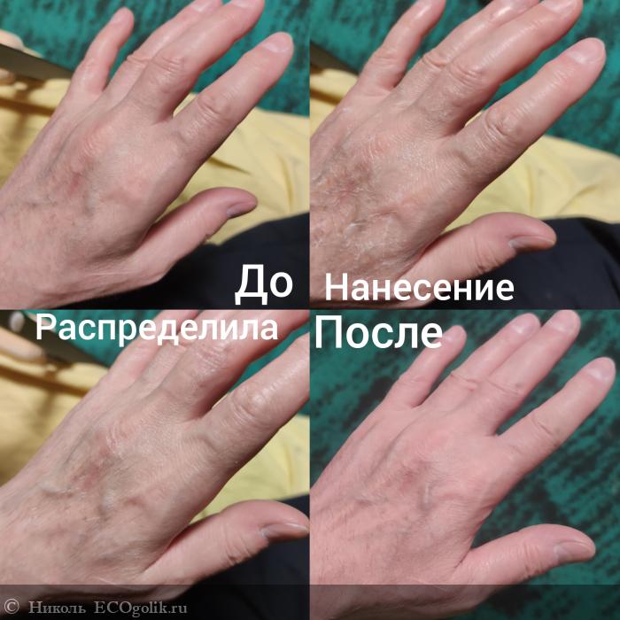 - Замечательно смягчает и устраняет небольшую отёчность. Придаёт коже ухоженный вид. (Покажу результат на мужской руке.)