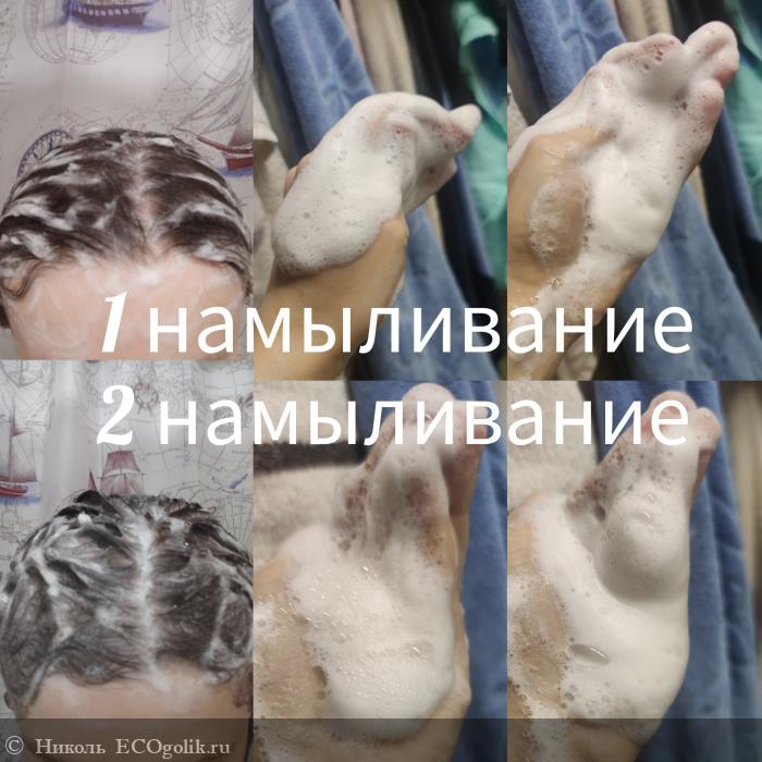 средней густоты, имеющую небольшой оттенок. Шампунь легко вспенивается в руках, быстро смывается волос, не оставляя после себя ощущения недопромытости или будто промыли до скрипа. Расходуется экономично.