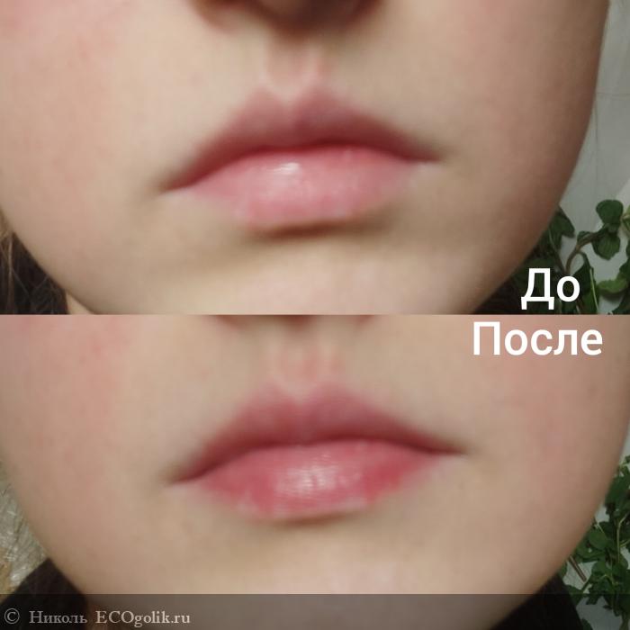 Во время нанесения бальзама в течение 5 минут максимум ощущается небольшое покалывание, (оно достигается за счёт таких компонентов, как: экстрактов (перца чили, имбиря), а так же ментола, эфирного масла мяты) но оно очень приятное, никакого дискомфорта не доставляет. За счёт этого эффекта, осуществляется прилив крови и, в итоге, губы слегка краснеют, как будто я их накрасила, и губки приобретают лёгкий блеск, ухоженный вид. Сам блеск не заметен, если не приближаться близко. Бальзам для губ не ощутим на устах, он не оставляет липкости. Не подчеркивает шелушения, не течёт с губ.
