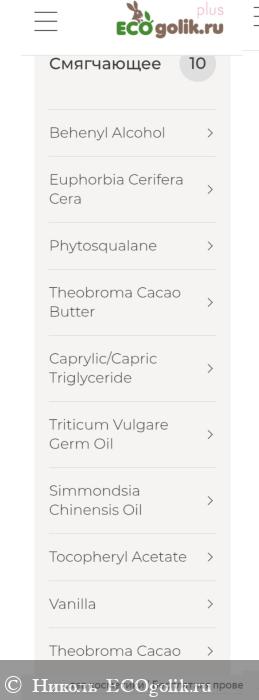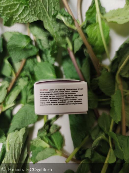 У бальзама очень приятный аромат. Он мне пахнет какао с яркими нотками мяты и ментола. Очень классное сочетание. Такой аромат получается за счёт таких компонентов в составе, как: масло какао, эфирные масла какао и мяты, ментол.