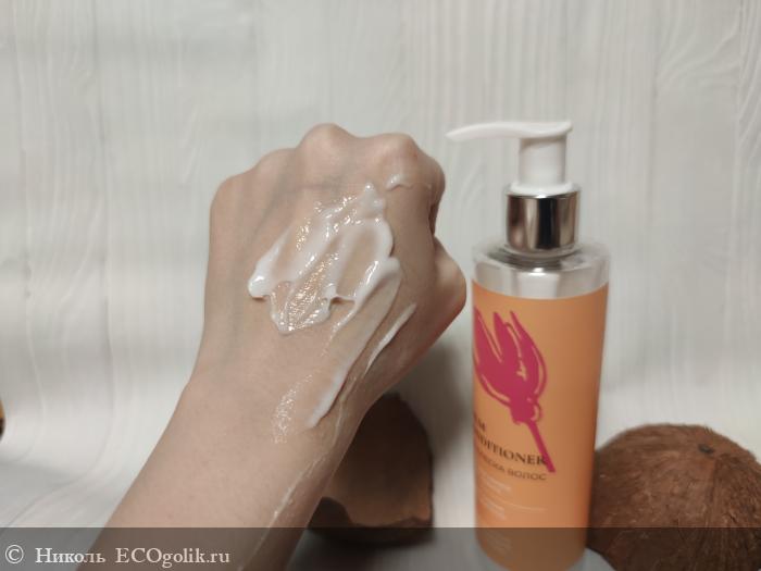 Аромат у бальзам-кондиционера в меру насыщенный, он пахнет эфирным маслом иланг-иланга. На волосах после мытья аромат чувствуется в течение 3 часов.