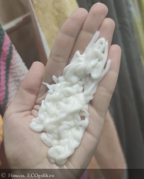 Распределяется бальзам-кондиционер по волосам легко, нежно обволакивая каждую прядку, помогая распутать небольшие колтуны. Смывается с волос быстро, не оставляет ощущения утяжеления ни при смывании, ни при высыхании волос.