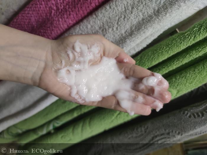Кондиционер легко распределяется по волосам и быстро смывается с них, не утяжеляя, не перепитывая прядки, отлично распутывая колтуны, облегчая расчёсывание волос. Уже при смывании кондиционера заметна и ощутима гладкость волос, пальцы легко проходят сквозь шевелюру.