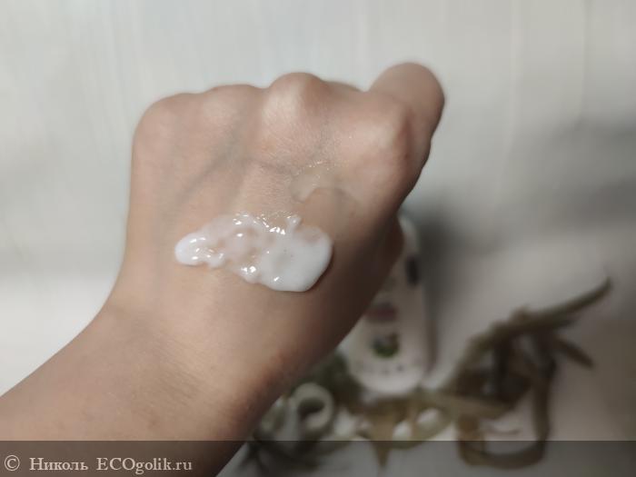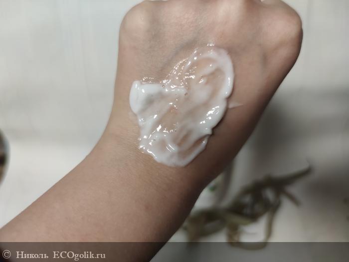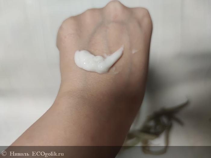Этот уходовый продукт имеет кремовую однородную текстуру белого цвета.
