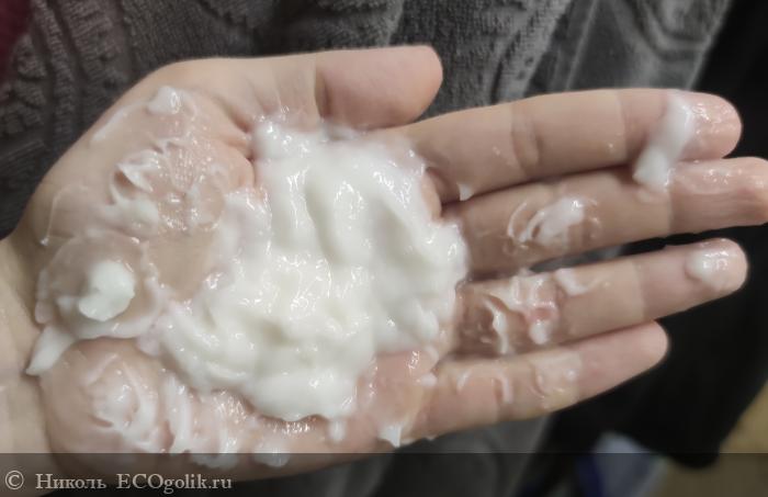 Кондиционер легко распределяется по волосам и быстро смывается с них, не утяжеляя, не перепитывая прядки, отлично распутывая колтуны, облегчая расчёсывание волос.