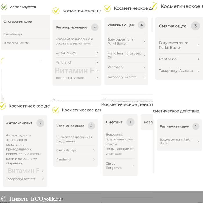 Прикреплю разбор компонентов по косметическому действию.