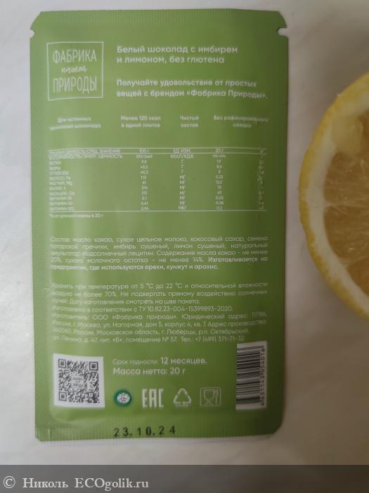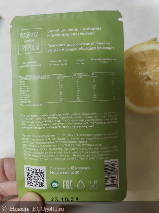 Николь: Белый шоколад с имбирём и лимоном от ООО «Фабрика природы».