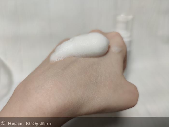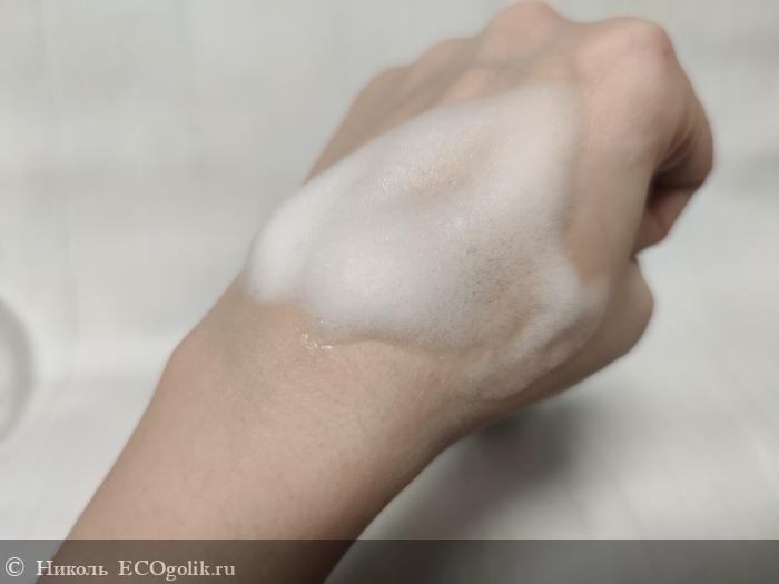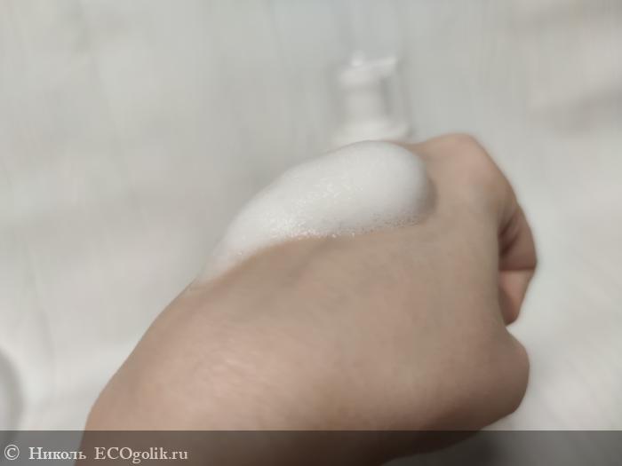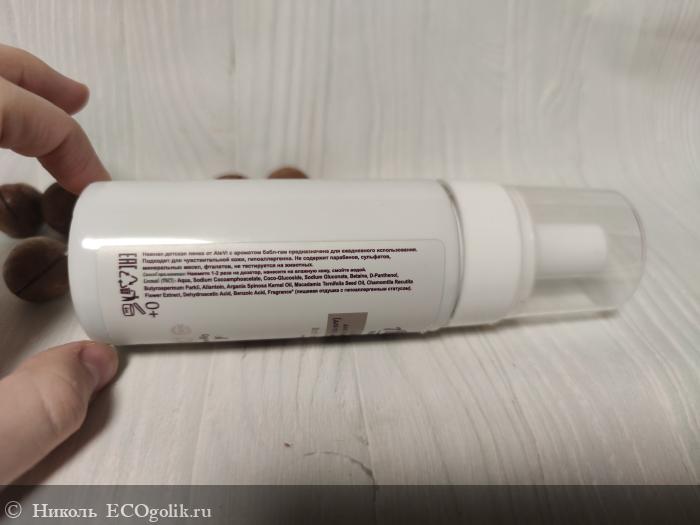 Облачко пены получается мягким, воздушным, пушистым, пышным, ароматным и нежным. Не растекается сразу после нанесения, не опадает. Быстро смывается с кожи головы, с волос, с кожи тела. Не оставляя после себя чувство стянутости кожицы, после смывания нет ощущения скользкости или непромытости корней волосиков, нет покраснения и сухости. Не щиплет глазки. Процесс мытья приносит удовольствие, как для малыша, так и для мамы.