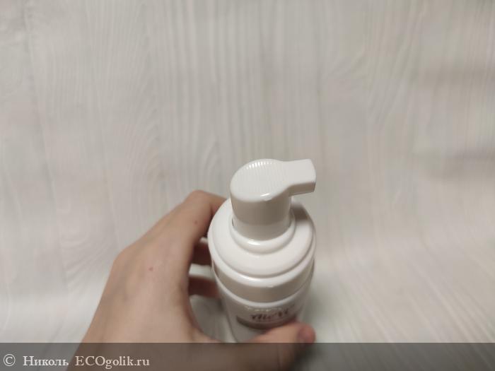 Оснащён флакончик помповым дозатором, который закрывается прозрачным колпачком. Колпачок защищает дозатор от случайного нажатия и попадания воды. Такой дозатор очень удобен в использовании. Ведь при его помощи можно с лёгкостью контролировать необходимое количество выдаваемой пенки, избегая её перерасхода.