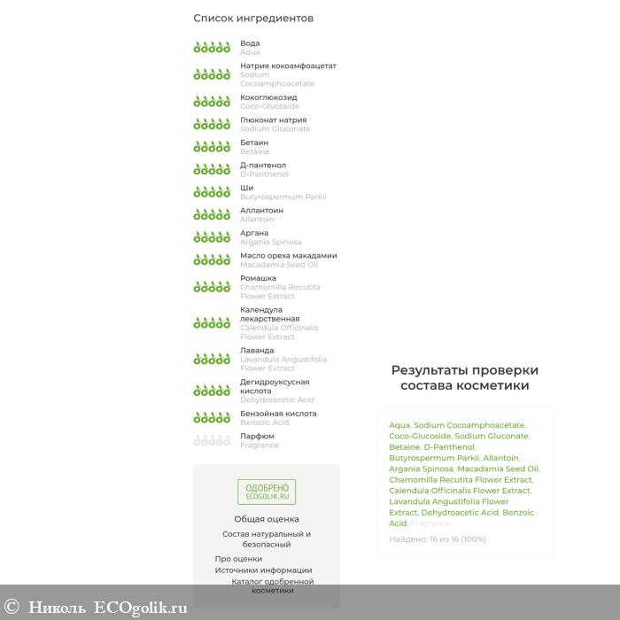 Состав хороший, натуральный, безопасный. В нём после ПАВ, можно увидеть такие классные компоненты, как: бетаин, д-пантенол, аллантоин, масло ши, масло арганы, масло макадамии, а так же экстракт ромашки.