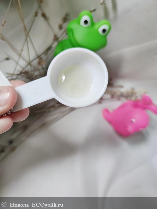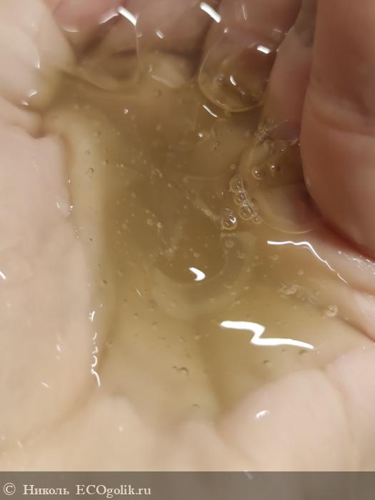 Консистенция у шампунь-геля нечто среднее между гелевой и желеобразной, больше чуть похоже на подтаявшее желе.