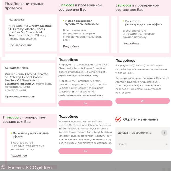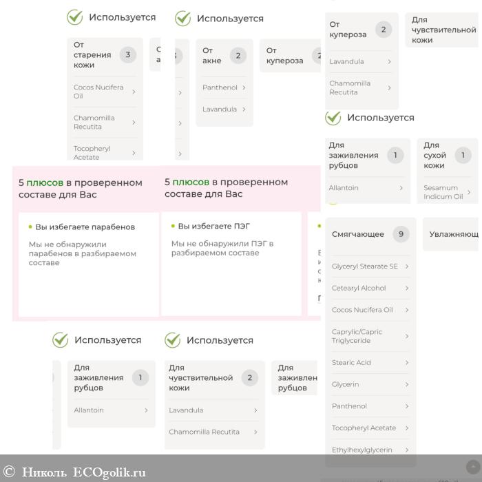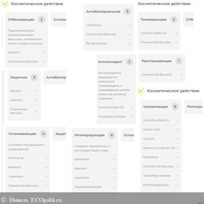 Дано подробное описание, в котором расписаны действия нескольких компонентов, входящих в состав этого уходового продукта.